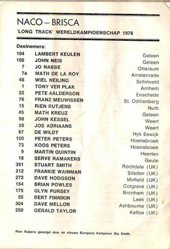 Held at Baarlo, Holland on 5th & 6th August 1978